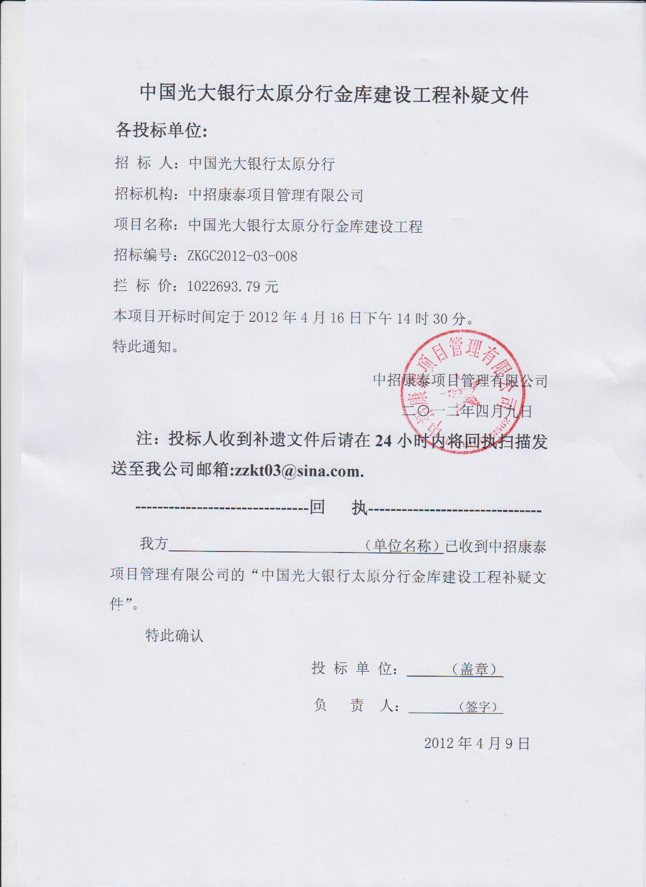 中國光大銀行太原分行金庫建設(shè)工程補疑文件