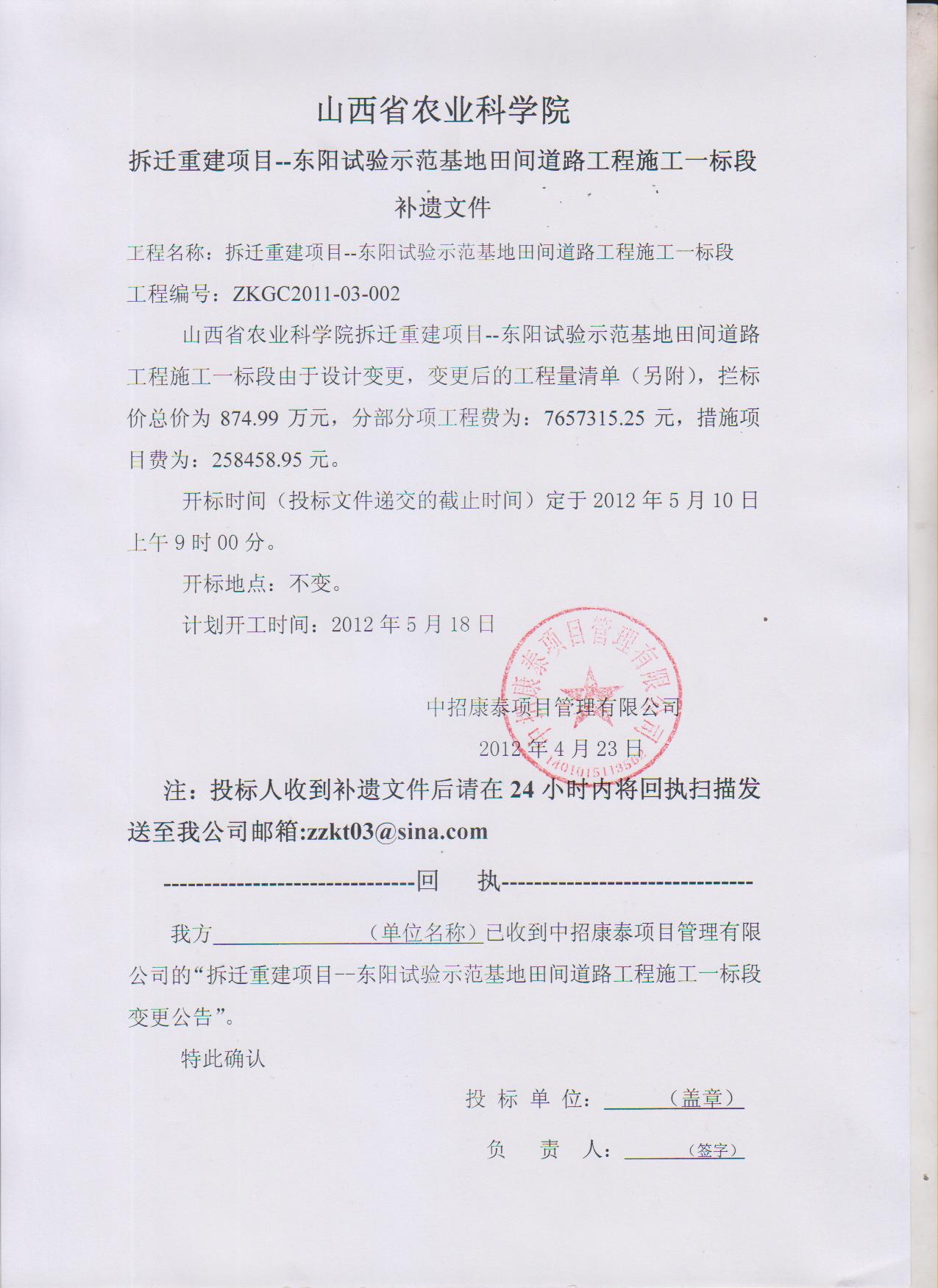 山西省農(nóng)業(yè)科學(xué)院拆遷重建項(xiàng)目--東陽(yáng)試驗(yàn)示范基地田間道路工程施工一標(biāo)段補(bǔ)遺文件